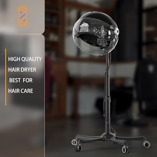 DEER BEAUTY Professional Standing Hair Dryer – 1875W Floor Standing Hooded Hair Bonnet with Ionic Generator for Professional Salon Station Spa Home Use Hair Drying.Get professional salon-like treatment at home with the DEER BEAUTY Hooded Hair Dryer. It provides an all-in-one solution that allows you to set different hairstyles, perform conditioning treatments, or simply dry hair.The dryer features a large hood that allows it to easily fit over most sizes of rollers. It has an 1875 watt heating element that can be set at 3 levels according to your hair type and desired style. Keep it low for fine or damaged hair and raise the temperature for thicker, coarser hair. It can also be set to blow cool air for styling even synthetic hair.DEER BEAUTY hairdryer also features tourmaline ionic technology. It generates millions of negative ions that help to lock hydration into hair resulting in smoother, shinier, more polished-looking hair shafts. Switch ion flow on or off for getting your desired effect.The unit features many creature comforts that make using it a luxurious experience. It has a height-adjustable that sits on top of smooth wheels. Set it at your preferred height while being able to move it easily in any direction. It also features airflow adjustment, air intake filter, and translucent visor with an auto-off function for your convenience. All these features make it perfect for use at home or in a professional salon.