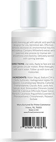 promesse Acne Control Facial Cleanser – Anti-Aging Exfoliating Wash with Glycolic & Salicylic Acid, Lavender-infused, Made in USA, Organic & Natural Ingredients