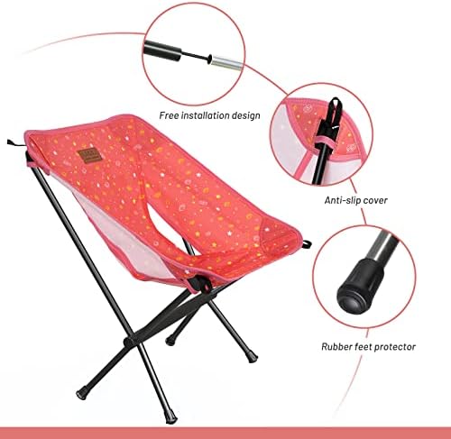 Protable Lightweight Chair for Youth, Compact Folding Size 12.6“×4.3″, Only Weights 1.6lbs, 600D Oxford Fabric, Durable Aluminum Alloy Frame, Easy to Storage & Carry(Pink)