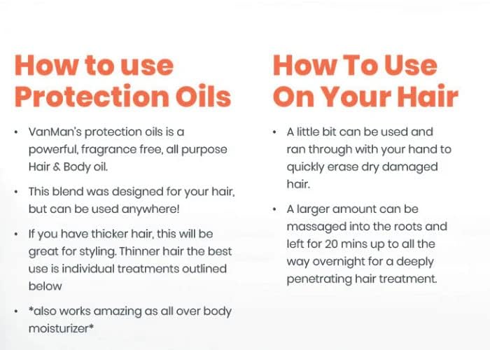 Great for Styling – Vanman Protection Oil hair serum not only tames frizz but also adds a healthy, glossy finish to your locks. It’s the perfect oil hair care solution for styling and works as a hydrating hair oil and heat protectant serum.
