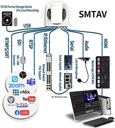 PTZ Camera with 3G-SDI,HDMI and IP Streaming Outputs,20X Optical Zoom,Broadcast Live Streaming Camera for Conference,Events,Church and School etc (20X-White)
