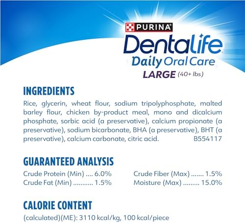 Purina Dentalife dog treats are VOHC (Veterinary Oral Health Council) Accepted products designed for large-sized (40+ lbs.) adult dogs and proudly produced in Purina-owned USA facilities
