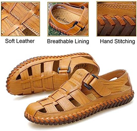 Mens Sport Sandals Breathable Outdoor Fisherman Shoes Adjustable Closed Toe Summer Leather Loafters