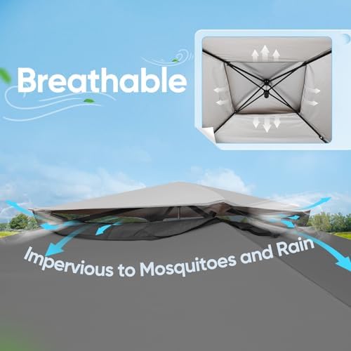 Quictent 13’x13’ Pop up Gazebo with Mosquito Netting, One Person Set up Outdoor Canopy Tent, Ez up Screened House Tent Shelter Vented for Patio, Backyard or Outdoor (Gray)