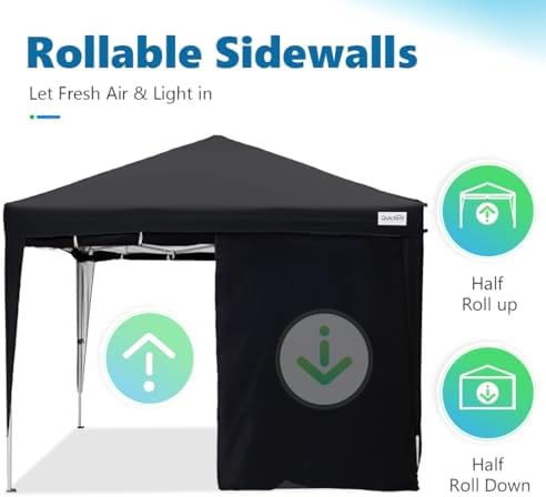 ✅ [ ROLLABLE SIDEWALLS]: The canopy tent sidewalls are rollable, you can roll up in sunny days and put down when a sudden rain. The 10’x10′ pop up canopy tent features with 4 side walls, including two side walls with mesh windows and two door walls with zippers for easy entrance.