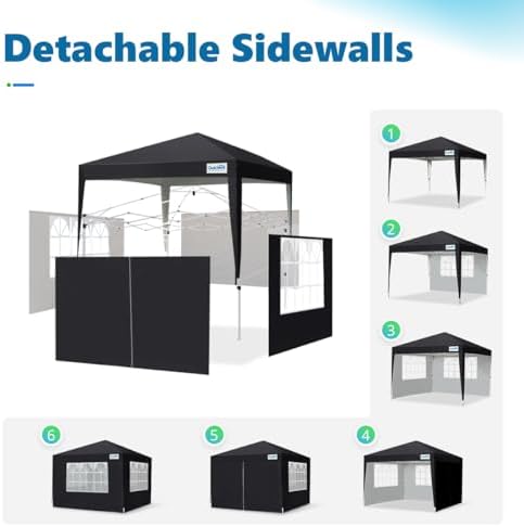 ✅ [DURABLE FRAME]: Our 10×10 pop up canopy with sidewalls is made of a thick and durable steel frame, which can stand about 15-20mph wind. The canopy tent 10×10 with sidewalls also comes with guylines and stakes for stability.