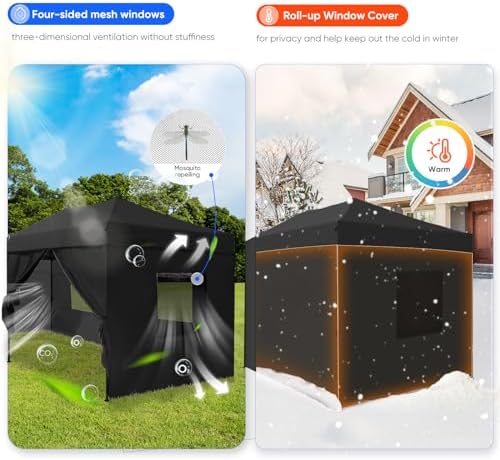 💥[Wide Usage&Roller Bag]: This pop up screen tent is best for your lawn, patio, garden, or backyard. Suitable for outdoor activities such as craft shows, picnics, camping, parties, flea markets, weddings, etc.. Meanwhile, there is a roller bag with our pop up gazebo, which can be in your cars. Also rope and stake are included.