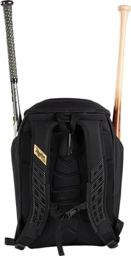 Introducing the Rawlings Gold Collection Backpack Equipment Bag in sleek black, the ultimate companion for athletes seeking premium gear organization and comfort. This versatile backpack is thoughtfully designed to keep your sports equipment in pristine condition and readily accessible. Crafted with durability as a top priority, it features a spacious main compartment to accommodate gloves, helmet, cleats, and more. Multiple pockets and compartments ensure efficient organization for all your essentials. The padded shoulder straps and back panel provide exceptional comfort during long journeys.