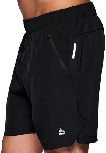 RBX Active Quick Drying Workout Shorts for Men, Reflective Detail Woven Gym Basketball Shorts with Zipper Pockets