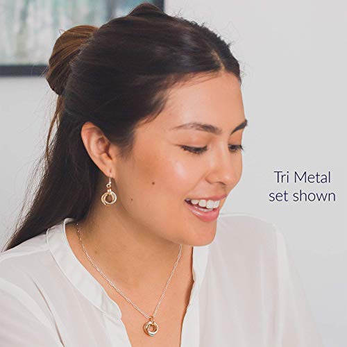 Perfect for everyday wear, this 925 sterling silver earring and pendant set should be a core piece of every woman’s wardrobe. Offering a sophisticated look that goes with everything, the square edge on each interlocking ring gives these knots a distinctly modern feel. Handcrafted Argentium (the low tarnish sterling silver) links are individually woven together, making earrings and pendants that are not only striking, but fun to fidget with as well. They make a great gift idea as well, appealing to any woman who likes minimalist or classic design in her jewelry.