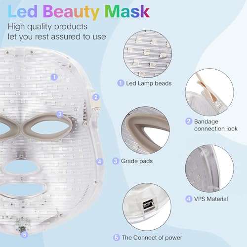 Red Led Face Mask Light Therapy At Home, Led Face Mask Light Therapy, 7-1 Colors LED Facial Skin Care Mask