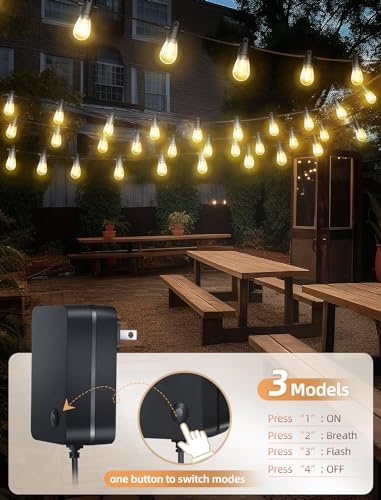 【3 Lighting Modes & Timer Function】: UIONVO upgraded edison string lights for outside have 3 lighting modes for you to choose from: Lighting, Breath, and Flash. you can create the desired ambience and change it according to your mood or occasion. 3/5H Timer to turn off automatically, saving the hassle of manually unplugging to turn off the lights.