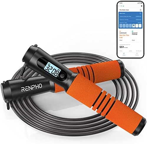 Reach your fitness goal with APP Renpho Health: Our fitness orange skipping rope can connect with our APP Renpho Health which can easily analyze and track your periodic workout data. You can grasp your skip time, total skip number, calories burned, and tangles to reach your fitness goal at any time.