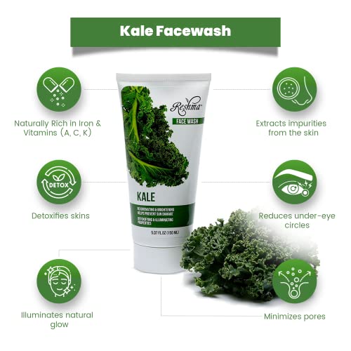 Reshma Beauty Kale Face Wash | Cleanser for All Skin Types & Dull Skin |Purifying and Hydrating| Enhances Natural Glow| Cruelty Free | Removes Make Up| For Daily Use – Cruelty Free(Pack of 6)