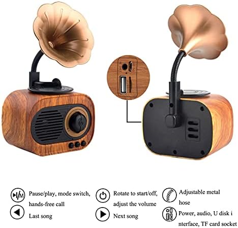 Retro Music Speaker Vintage Wireless Speaker Portable Outdoor Speaker Loud Stereo Sound Rechargeable Speaker Built in Mic Support Answering Calls USB TF Card AUX for Home Party Office