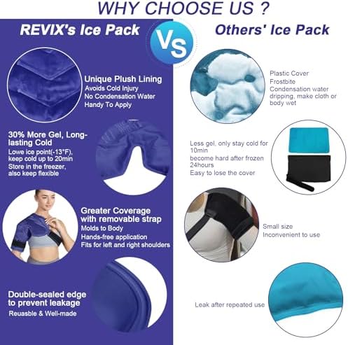 🧊Long-lasting Gel Ice Pack- Shoulder ice pack rotator cuff cold therapy is filled with 30% more lower ice point gel at -13℉, resulting in better-alleviating pain around muscles, joints, and tendons on the shoulders. REVIX Ice pack for shoulder is great for Muscle Spasms, Bursitis, Shoulder Rotator Cuff Tears, and Tendonitis.