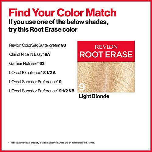 Revlon Permanent Hair Color, Permanent Hair Dye, At-Home Root Erase with Applicator Brush for Multiple Use, 100% Gray Coverage, Light Blonde (9), 3.2 Fl Oz