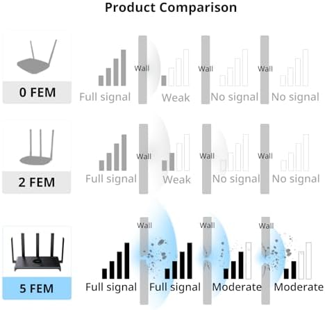 Better Signal: Boasting five omnidirectional antennas and five high-power FEMs, this router provides a stronger Wi-Fi signal that can penetrate through one more wall, ensuring reliable connectivity even in houses with complex layouts and diverse room types. (Coverage can reach up to 3000 square feet.)
