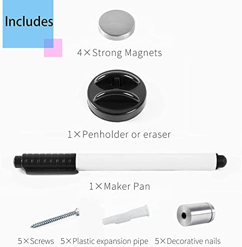The package including 1 marker,1 pen holder(eraser),4 magnets,5 nails,5 Screws,5 mount hardware.