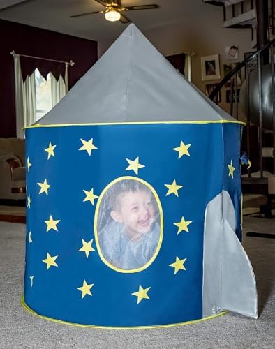 Rocket Ship Tent – Space Themed Pretend Play Tent – Space Play House – Spaceship Tent For Kids – Foldable Pop Up Star Play Tent Blue