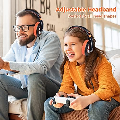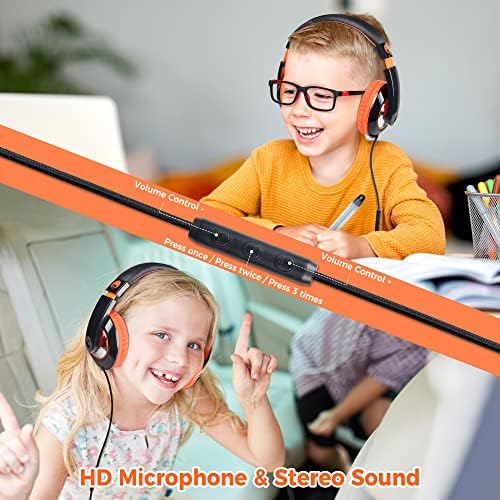 rockpapa Comfort+ Kids Headphones with Microphone and Volume Control, Boys Girls Student Over-Ear Headphones Wired for School Classroom Laptop PC Computer Tablet Black Orange