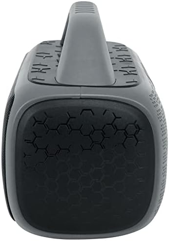 33 Foot Maximum Bluetooth Range. The built-in microphone allows you to make and receive phone calls hands-free. Compatible with any Bluetooth devices such as iPad, iPhone, Laptops, Android phone, other cell phones, iPods, other Bluetooth MP3 Players. Carry Handle. Product Dimensions (Inches): 10.98” L x 5.2” W x 7” H. Product Weight: 3.86 lbs. Color: Black and grey
