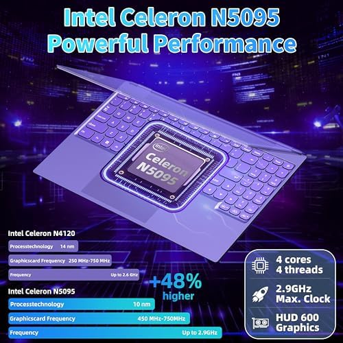 💜💻💜【 𝐑𝐞𝐥𝐢𝐚𝐛𝐥𝐞 𝐏𝐨𝐰𝐞𝐫 𝐔𝐧𝐥𝐞𝐚𝐬𝐡𝐞𝐝: 𝐄𝐱𝐩𝐞𝐫𝐢𝐞𝐧𝐜𝐞 𝐇𝐢𝐠𝐡-𝐏𝐞𝐫𝐟𝐨𝐫𝐦𝐚𝐧𝐜𝐞 𝐌𝐚𝐠𝐢𝐜 𝐰𝐢𝐭𝐡 𝐭𝐡𝐞 𝐍𝟓𝟎𝟗𝟓 𝐏𝐫𝐨𝐜𝐞𝐬𝐬𝐨𝐫】💽Embark on a journey of computing supremacy with the Intel 11th-Gen Celeron N5095 processor! 🚀Its quad-core architecture, advanced 10nm technology, and a swift 2.0GHz base clock redefine efficiency, delivering a cutting-edge computing experience. 💨Conquer tasks effortlessly with seamless turbo boosts up to 2.9GHz,ensuring a fluid user experience for video editing, gaming,and multitasking.Immerse in intelligent data processing with a 4MB cache,and enjoy brilliant Intel UHD 600 Graphics,elevating your visual experience. 🎮🔥🌟