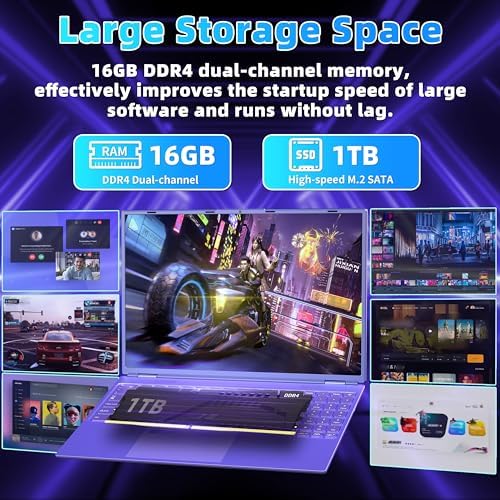 Rumtuk Classic 16″ Purple Laptop – 2.5K FHD IPS, Celeron N5095 (Up to 2.9GHz), 16GB DDR4 RAM, 1TB SSD, Win 11 Pro/Office 2019, Backlit Keyboard, Fingerprint, WiFi, Type-C, HDMI, Support HDD 2T Expand