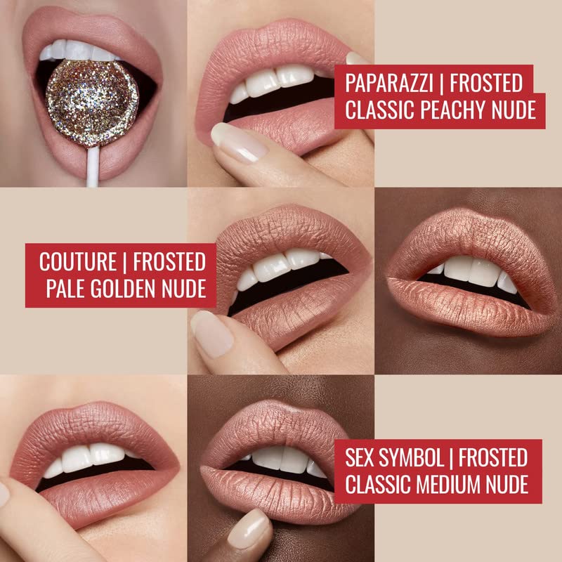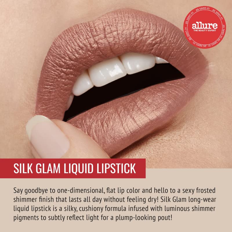 LONG WEAR LIQUID LIPSTICK: Silk Glam Liquid Lipstick is a silky, lasting long wear lipstick infused with luminous shimmer pigments to subtly reflect light. Our peachy-nude ‘Paparazzi’, golden-nude ‘Couture’, and medium-nude ‘Sex Symbol’ frosted lipstick shades give you a luxe selection for any mood.