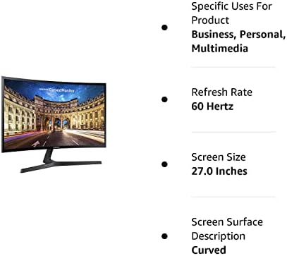 Samsung CF390 Series 27 inch FHD 1920×1080 Curved Desktop Monitor for Business, HDMI, VGA, VESA mountable, 3-Year Warranty, TAA (C27F390FHN), Black