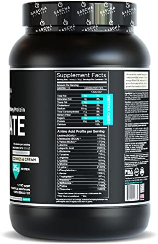 SASCHA FITNESS Hydrolyzed Whey Protein Isolate,100% Grass-Fed (2 Pounds, Cookies & Cream)