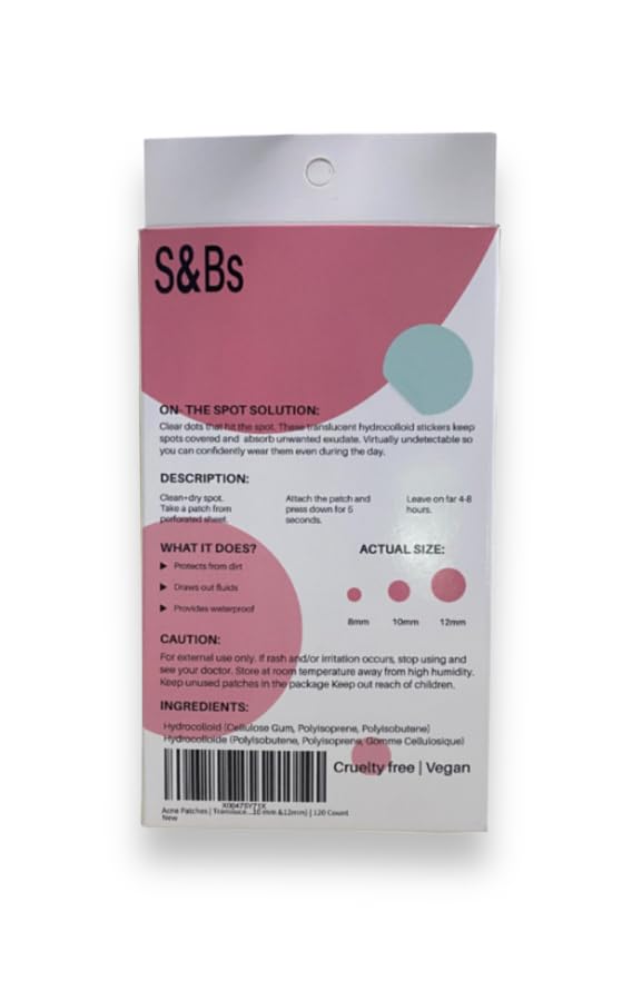 S&Bs Acne Patches | Translucent Hydrocolloid Pimple Patches | Cruelty Free | Vegan | For Zits & Blemishes | 3 Sizes (8mm,10 mm &12mm) | 120 Count