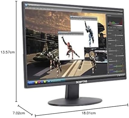 High Contrast Ratio: 5,000,000: 1.20 inches LED HD+ Monitor (19.5 inches Diagonal corner to corner). Dimensions With Stand (Inches) 18.01 x 7.17 x13.57 (inches). Without stand: 18.01 x 2.17 x 13.47(inches)