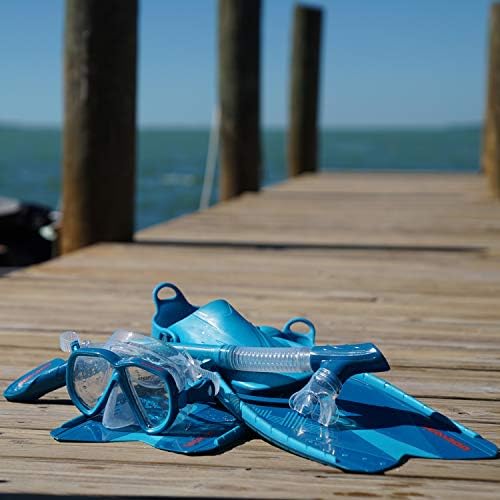 Premium Quality: Snorkel features silicone mouthpiece to reduce jaw fatigue, a splash guard to ensure no water gets in and a large exhaust purge valve for easy water clearing. Flexible foot pocket that adjusts to feet. Includes mesh carry pouch.