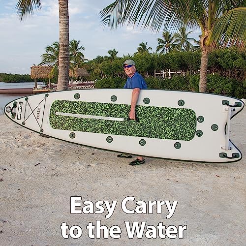 Sea Eagle FS126 12’6” Inflatable FishSUP Fishing Stand-Up Paddleboard w/Paddle(s), Storage Box, Pump, Removable Transom, Backpack/Optional Seat – Sit, Stand, Fish, Motor, or Troll