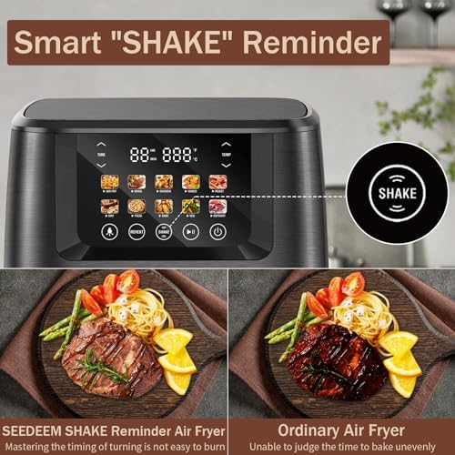 【Large Color Screen & Full Touch Design】: The SEEDEEM Air Fryer is equipped with a large color screen, displaying the operational interface and cooking status intuitively and clearly, offering you a more convenient control experience. The full touch design simplifies operation; with a gentle touch on the screen, you can easily select and adjust various functions, making the cooking process more straightforward. Making your cooking experience easier.