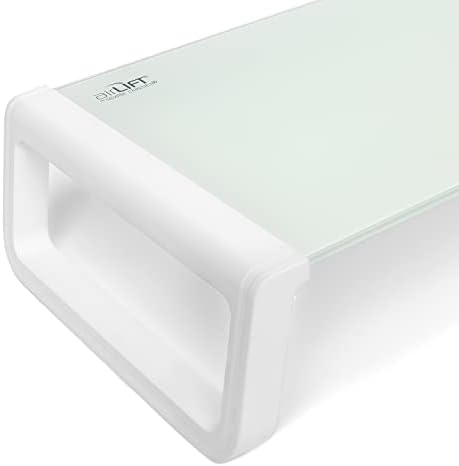 Seville Classics Airlift Elevated Premium Ergonomic W x 9″ D Monitor Stand Riser Storage for PC, iMac Computer, Laptop, Printer, Small LED/LCD Television, 21″ Tempered Glass, White