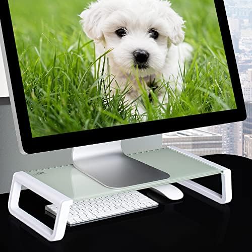 SAFETY FIRST – This stand with a unique frosted tempered glass top makes it easy to clean with any multi-purpose disinfectants keeping your workspace germ-free. The PVC legs on the stand feature non-slip grip rubber base to ensure the monitor is completely secure and stable on the desk as well as to prevent any scratching.