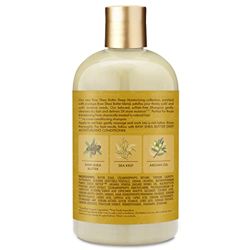 SheaMoisture Raw Shea Butter Shampoo – Deep Moisturizing Shea Shampoo Curly Hair Products, Shea Moisture Shampoo with Sea Kelp & Argan Oil, 13 Oz Ea (Pack of 4)