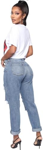 Womens High Waist Ripped Trendy Denim Jeans
