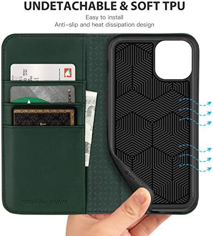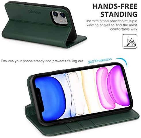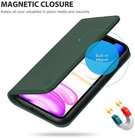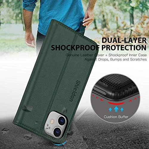 SHIELDON Case for iPhone 11, Genuine Leather Flip Wallet Shockproof Cover Book Design with Kickstand RFID Card Slots Magnetic Closure Compatible with iPhone 11 – Midnight Green