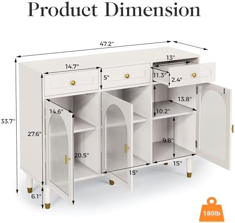 Versatile Usage: The cabinet, serving as a buffet sideboard in your kitchen or a coffee bar cabinet in your living room, can also function as a storage cabinet in your bedroom. Its versatile design enables endless possibilities and functional usage.
