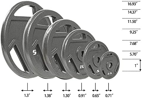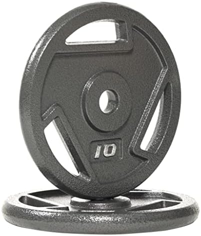Made of solid cast iron with a 1-inch center hole fits any Olympic bar with diameter 1” or less; Can be used with 1” dumbbell bars too