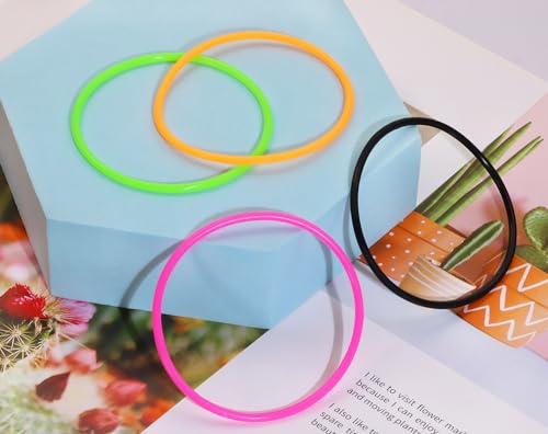 Silicone Jelly Hair Tie Bracelet Penta Angel 20Pcs Retro Solid Neon 80s Style Costume Wrist Band Hair Elastics for Men Women Boys Gilrs Party Favors (Black Green Orange Rose Red)