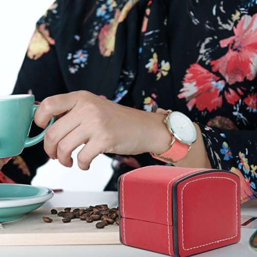 Single Watch Case, PU Leather Watch Travel Case with Removable Cushion, Jewelry Storage Case Organizer Portable Square Watch Box Bracelet Holder for Most Watches and Smart Watch (red)