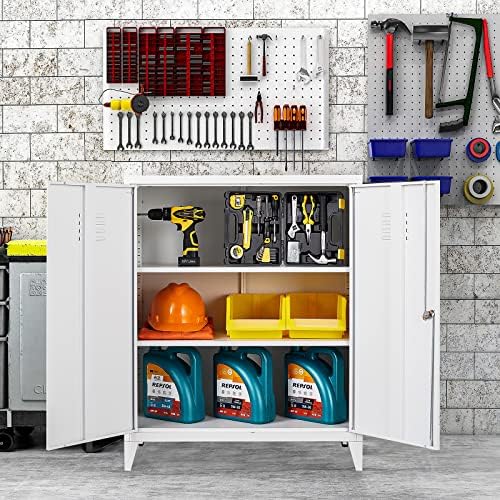 SISESOL White Metal Cabinet with Doors and Shelves,40″ Metal Storage Cabinet with Lock Door Adjustable Shelf,File Cabinet for Office Storage Cabinet, Home,School,Kitchen,Garage Storage Tool Cabinet