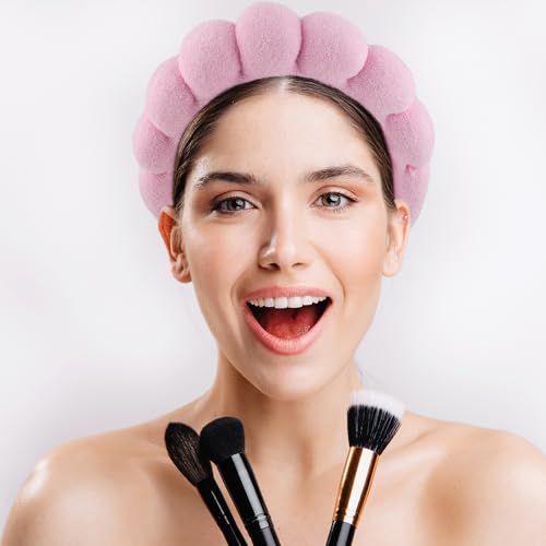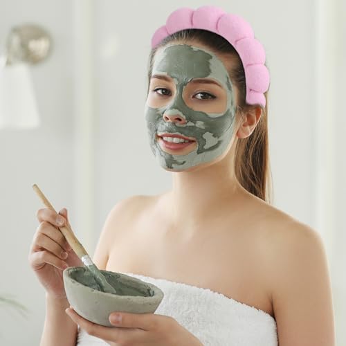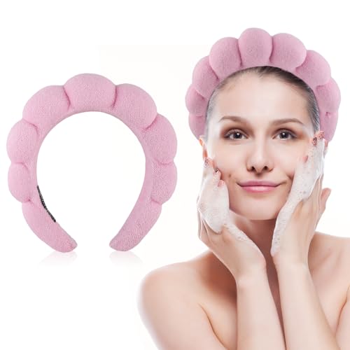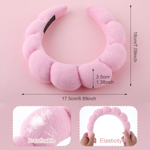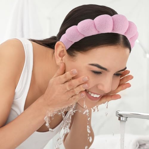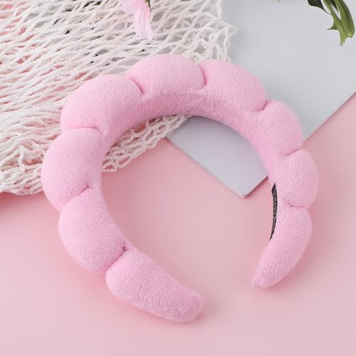 Skincare Headbands for Washing Face, Sponge Headband for Women Bubble Spa Headbands for Makeup, Terry Cloth Puffy Headbands for Facial Care, Hair Accessories for Skin Treatment (Pink)