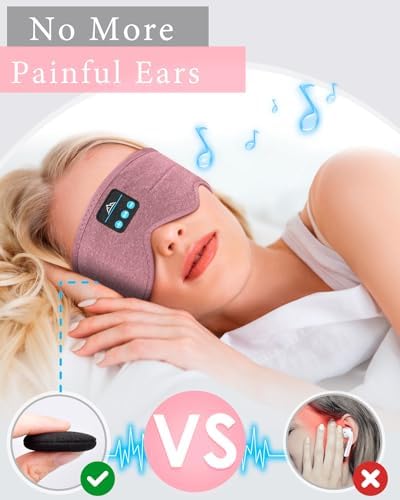 Sleep Headphones Stocking Stuffers for Men-Gifts for Women Upgraded Bluetooth Headband Sleeping Headphone Wireless Music Eye Mask Comfy, Adult Teenage Tech Sleep Gift for Birthday,Rose Red