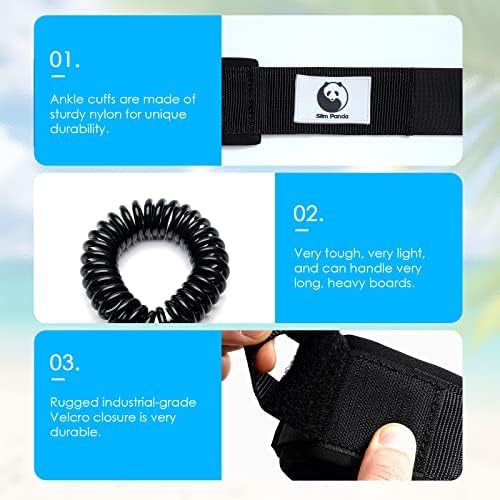 Slim Panda Premium Surf Board Leash,10 ft Spiral Sup Ankle Leash,Paddle Board Leash,6.8mm Legrope Strap,No Kink,for Longboards,Stand Up Paddle Boards,Paddleboard