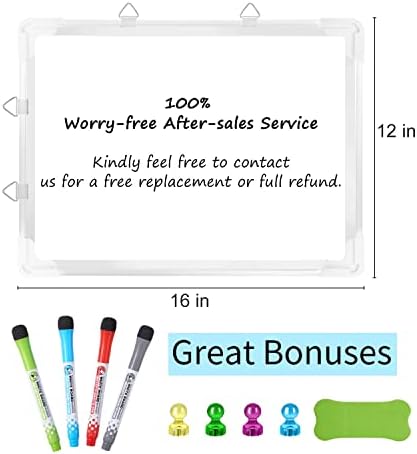 CONTAINS EVERYTHING YOU NEED – This dry erase whiteboard kit includes a 16×12-inch presentation board, 4 magnets, 1 eraser, and 8 markers. It comes with everything you need. Enjoy the marker board as soon as you receive it!